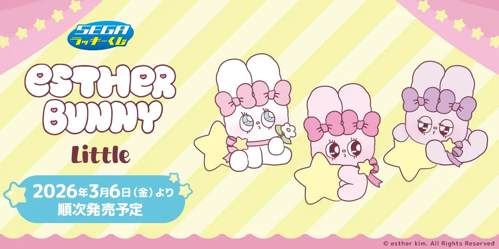 コンビニのローソンなどで「セガ ラッキーくじ エスターバニーリトル」が2026年3月6日(金)から順次販売が開始されます。価格は1回770円(税込)、取り扱い店舗はローソン、ミニストップ、各種ホビーショップなど。