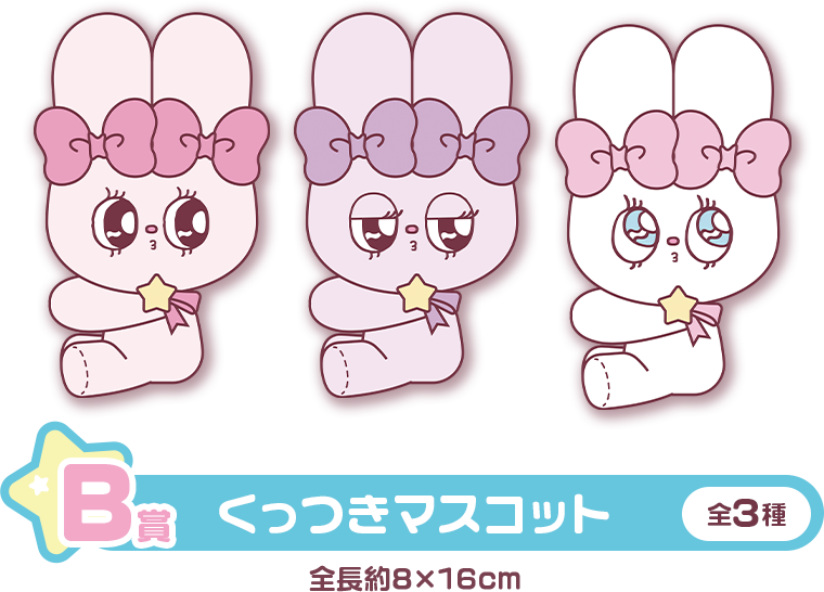 また、くじ券についているコードから応募することで、B賞の『くっつきマスコット』全3種類がセットになった「くっつきマスコット(B賞) 全種セット」が抽選で10名に当たるダブルラッキー賞キャンペーンも実施予定とのこと。