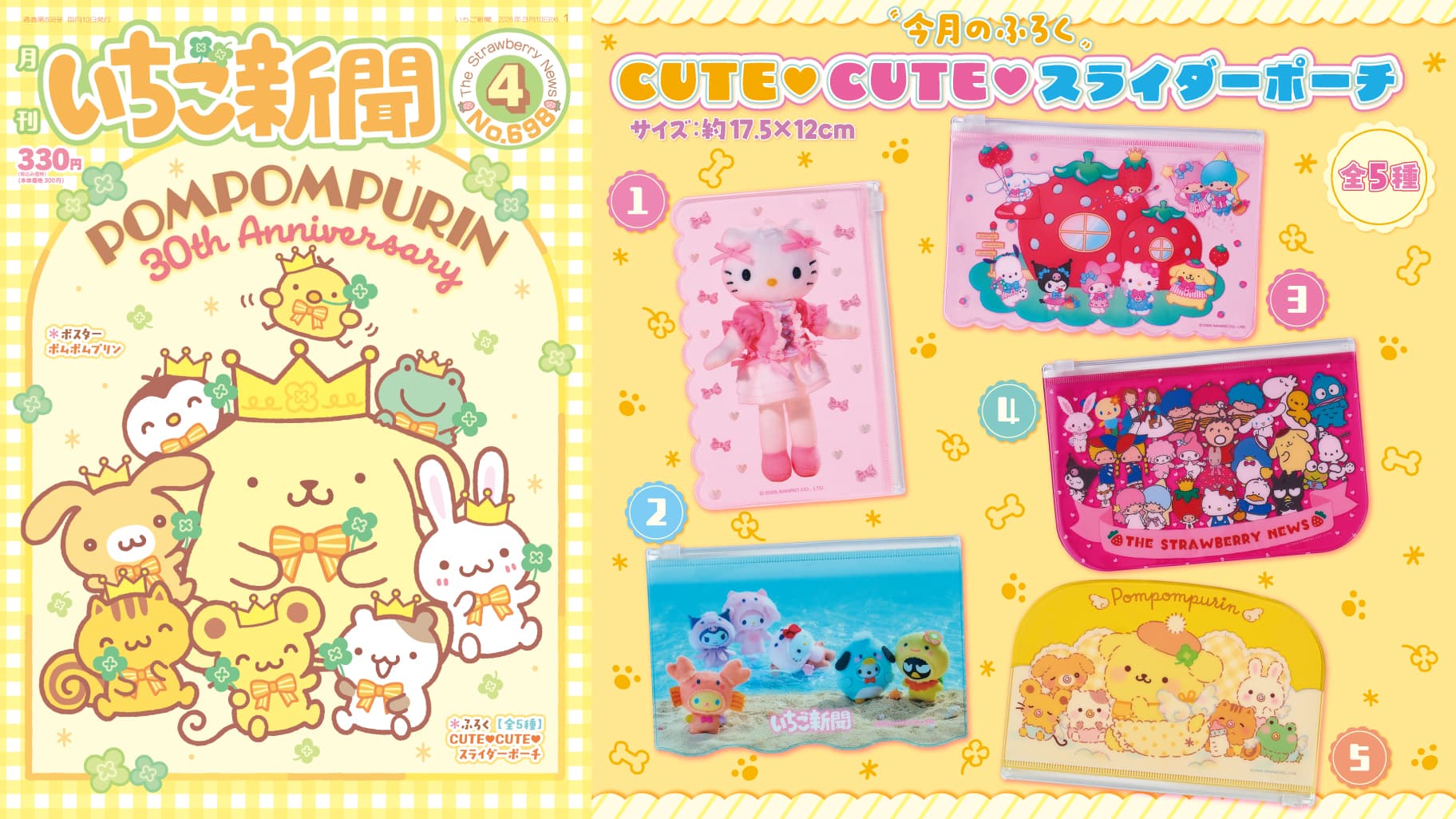 いちご新聞 2026年4月号ではポムポムプリンの30周年&バッドばつ丸のお誕生日を特集