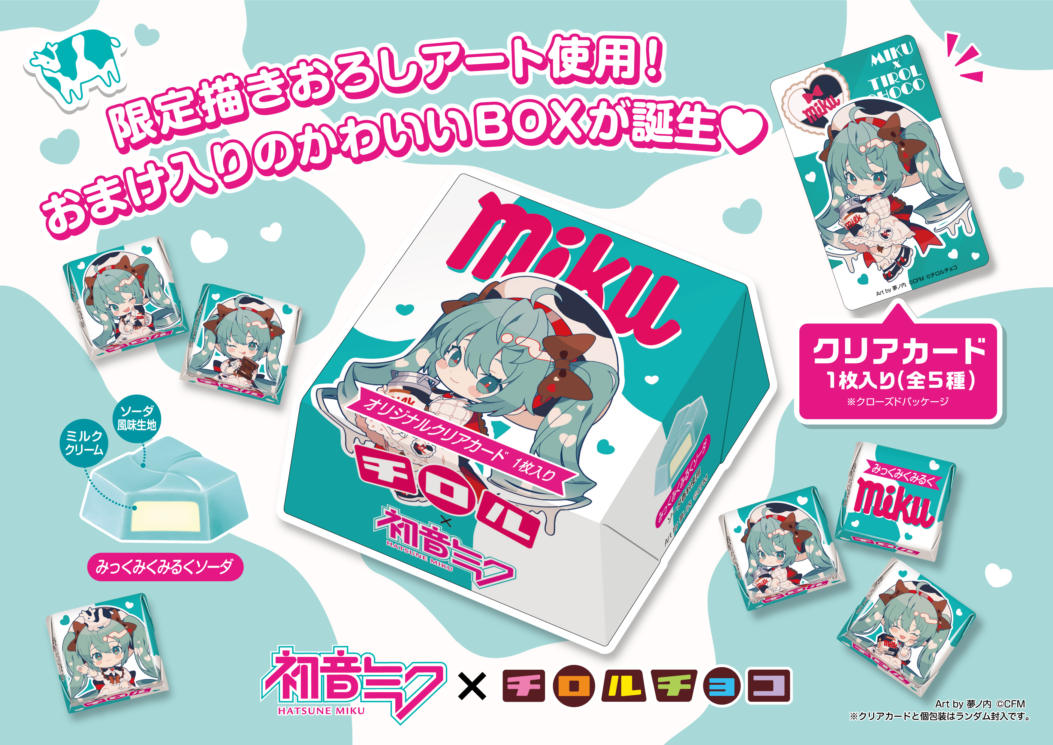 初音ミク×チロルチョコのコラボ商品第2弾「チロルミクBOX」、オリジナルクリアカード付き