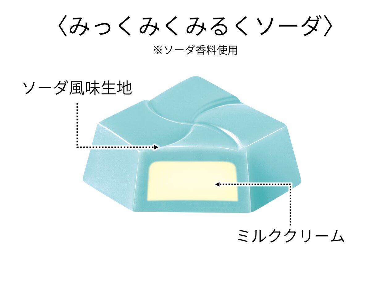 今回のボックス版では爽やかなソーダ風味を特長とする「チロルチョコ<みっくみくみるくソーダ>」が採用され、初音ミクのイメージカラーとさわやかな歌声を表現したとされています。
