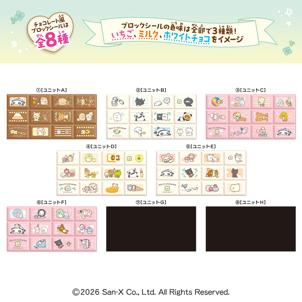 「ちょこぶろっくしーる サンエックスユニバース」ラインアップ