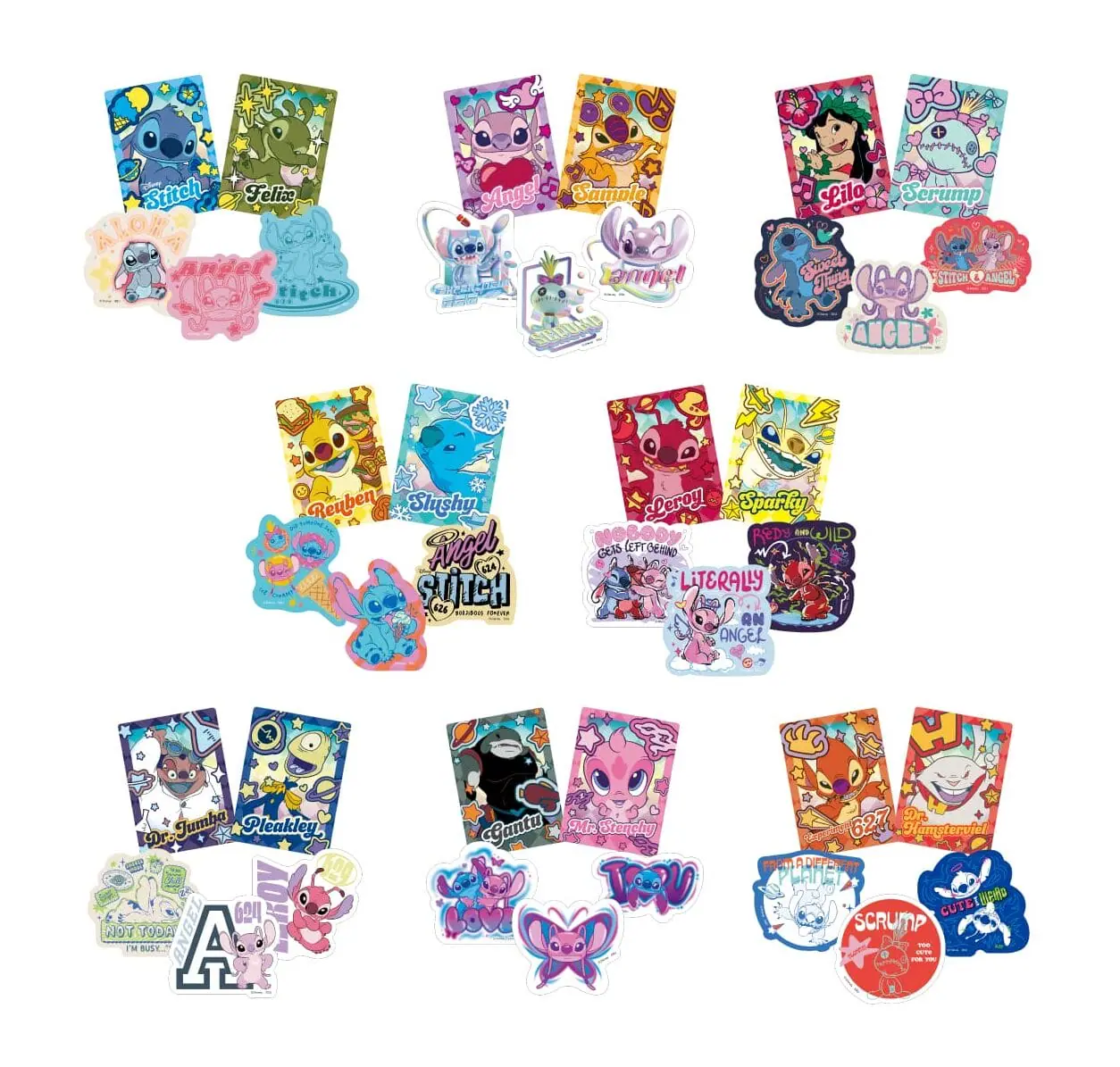 さらに、描き起こしアートを使用した「G賞 アクリルスタンド」、スティッチのカラフルな世界が詰まった「H賞 シール帳」、デコラファッションに欠かせないというカラフルな「I賞 缶バッジセット」、スティッチシリーズのキャラクターが集合した「J賞 カード&ステッカーセット」も用意されています。