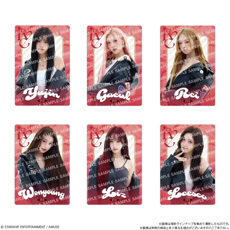 「IVE FROM STARSHIP ENTERTAINMENT WITH AMUSE ウエハース2」は、IVEメンバーの写真が使用された「両面フルカラー プラカード」がオマケで付いたウエハース。発売元はバンダイキャンディ、ウエハースの味はココアクリーム。