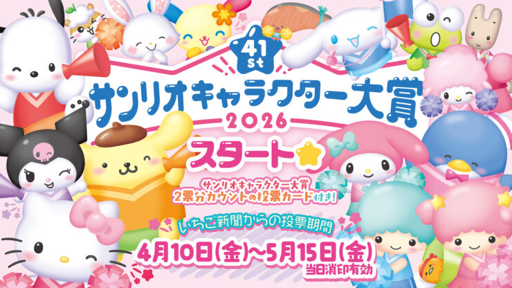 また、2026年サンリオキャラクター大賞がいよいよ2026年4月9日(木)からスタート。いちご新聞からの投票期間は4月10日(金) ~ 5月15日(金)までとされ、2票分カウントされる「投票カード」が付いています。