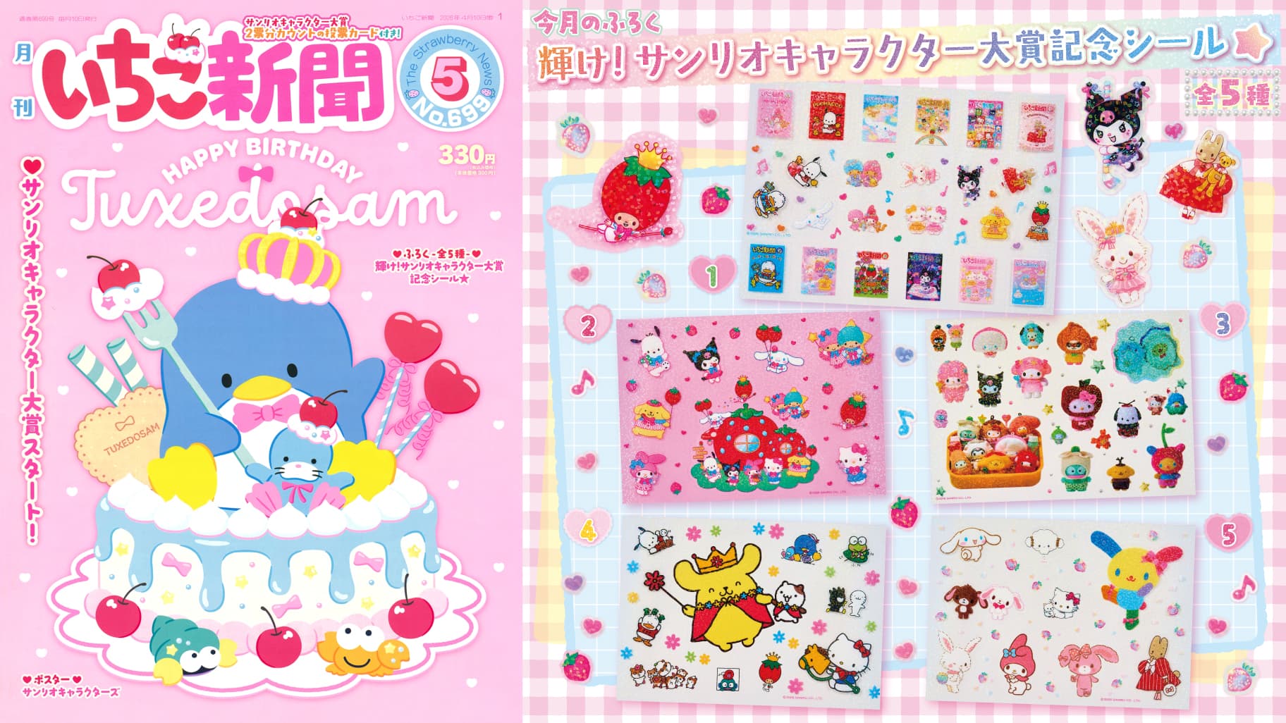 サンリオの月刊誌「いちご新聞」の最新号が登場、コンビニなどで「いちご新聞 2026年5月号/No.699」が2026年4月10日(金)から販売が開始されます。