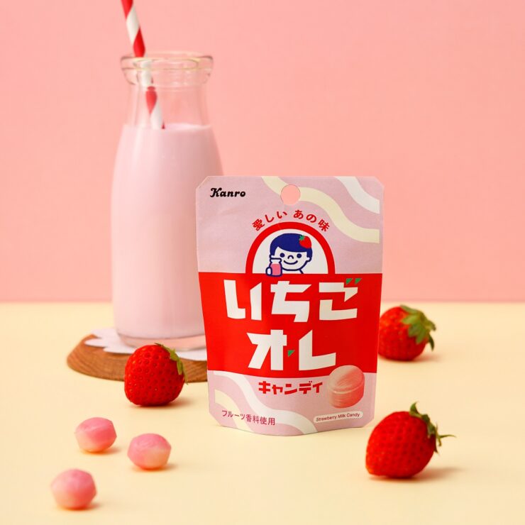 いちごオレキャンディは、昔ながらのいちごオレらしい、ミルキーだけどスッキリとした味わいを楽しめるというキャンディ。