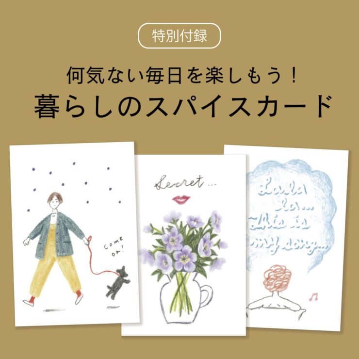 特別付録として「暮らしのスパイスカード」が用意されているほか、カタログを通じて商品を購入した人には「木目調まな板シート」がプレゼントされるそうです。