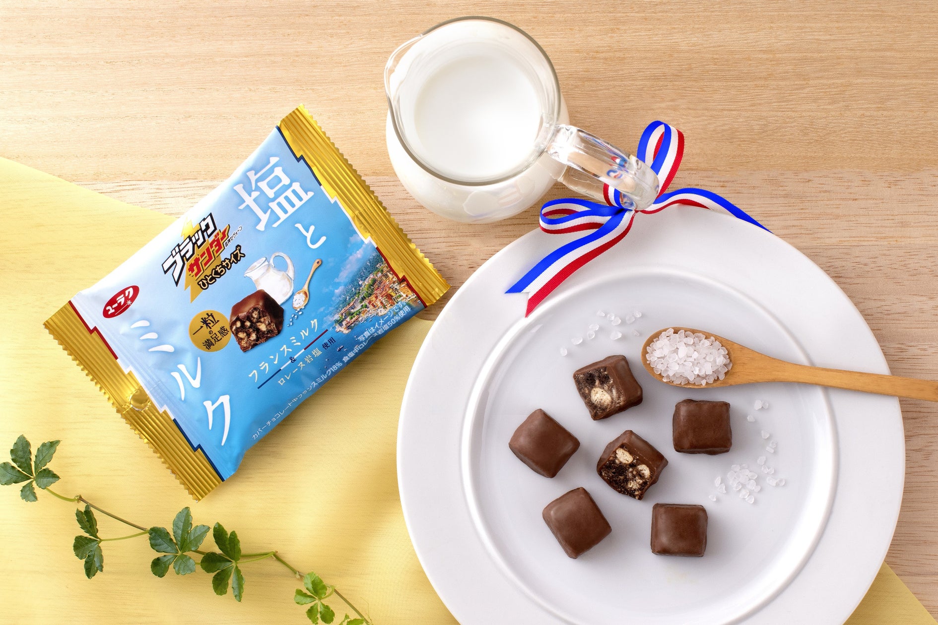 ブラックサンダーひとくちサイズ 塩とミルクは、「塩とミルク」をテーマにした夏にぴったりというチョコレート。