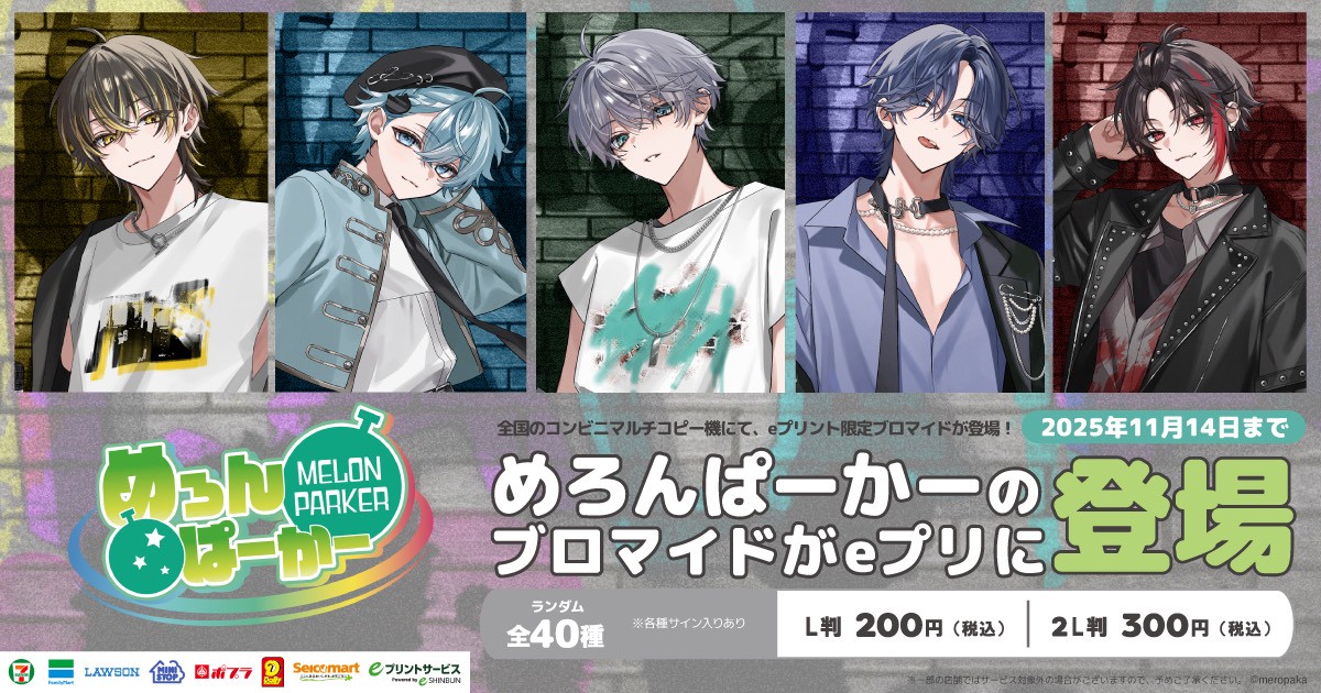 コンビニのコピー機で「めろんぱーかー オフィシャルブロマイド」が2025年10月15日(水)から販売が始まります。販売期間は11月14日(金)まで。
