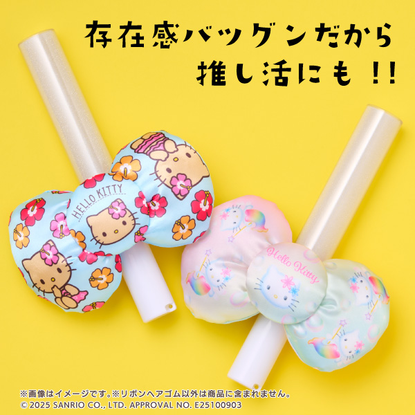 商品はヘアゴムとして使用することはもちろん、ペンライトなどにつけて推し活も楽しめるようになっています。サイズ(約)はW150×H90×D40mm内。