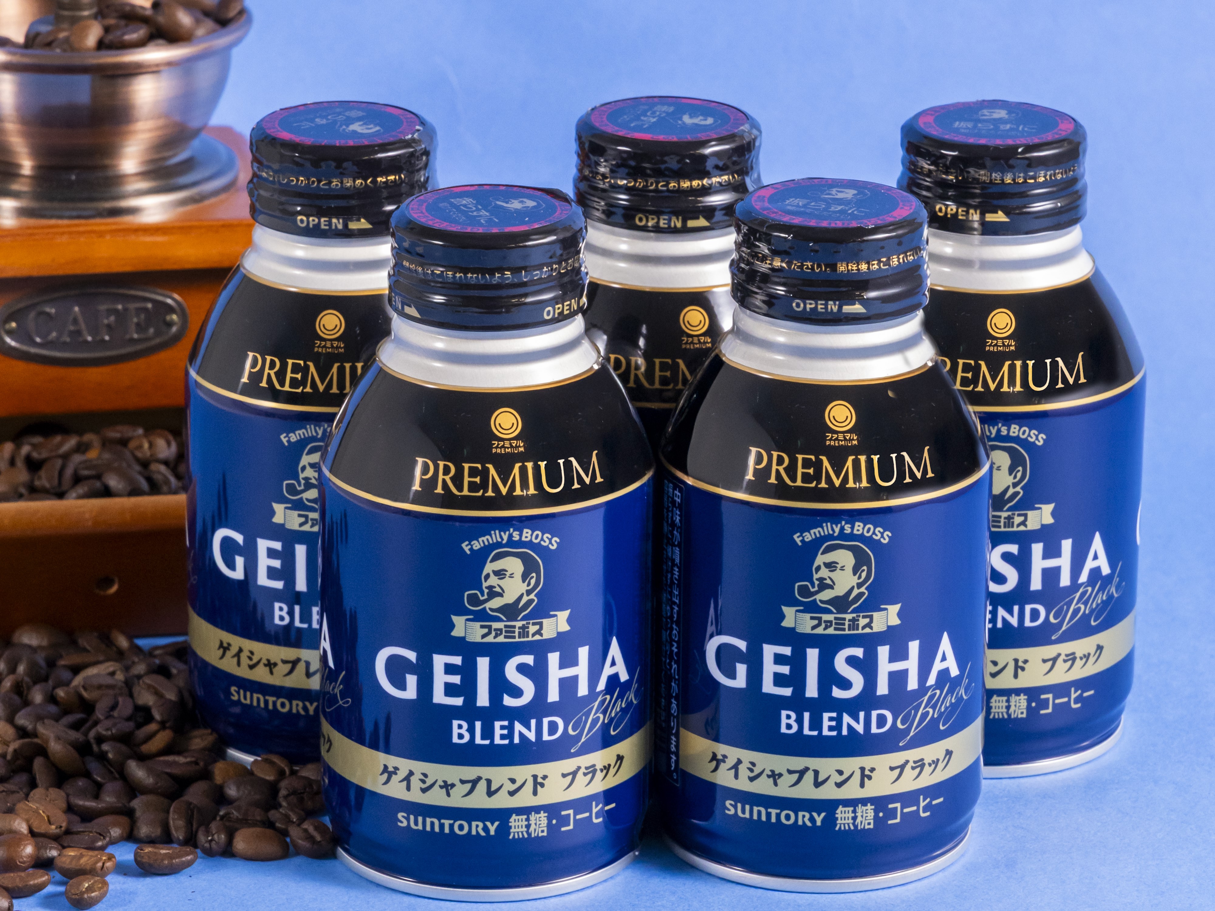 ファミリーマートとサントリーは共同開発商品「ファミボス」シリーズをこれまでにも展開していますが、今回の「ファミボス ゲイシャブレンド ブラック」はファミボス初のプレミアムライン商品として登場。