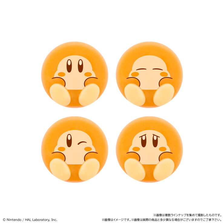 餅菓子のカービィ、ワドルディの表情は各4種類ずつ用意され、表情の組み合わせはランダムになっています(購入前に表情を選ぶことは可能)。