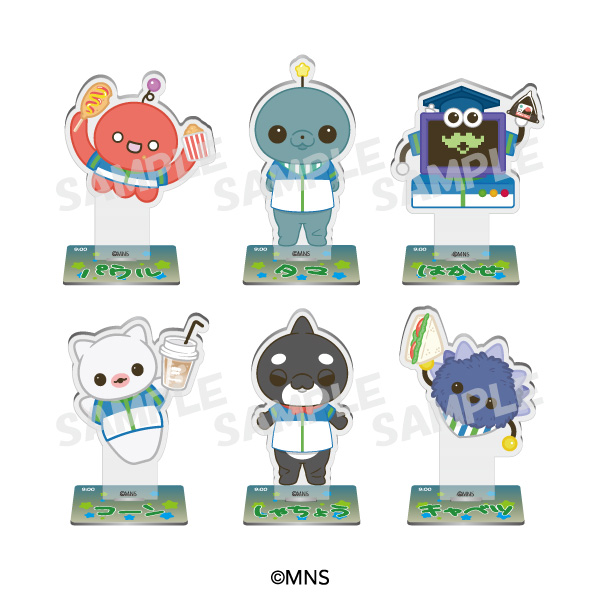 アクスタ/缶バッジ共にタマ、パウル、はかせ、コーン、キャベツ、しゃちょうたちが登場し、いずれも全7種(ランダム)がラインアップ。