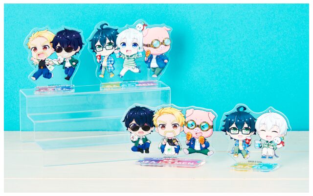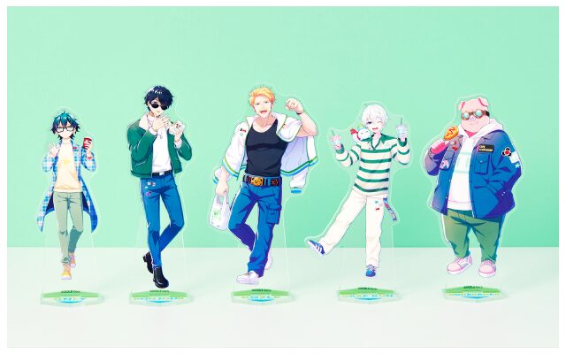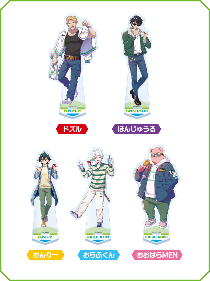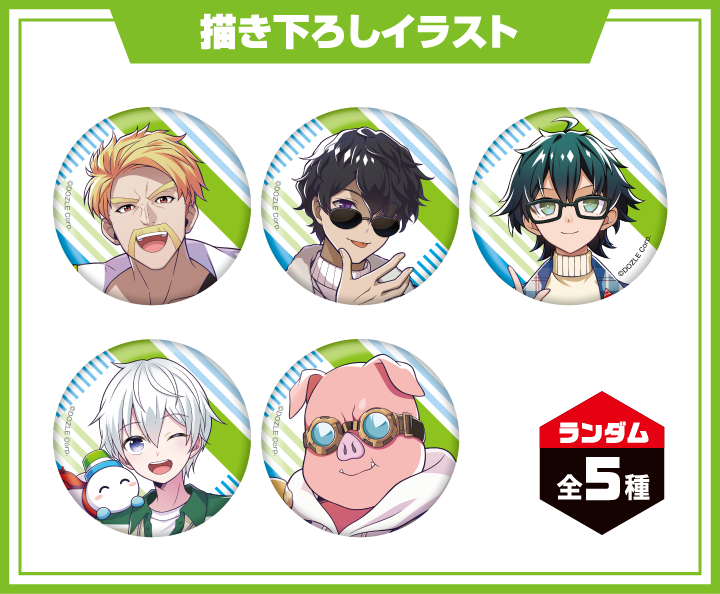 ドズルさん、ぼんじゅうるさん、おんりーさん、おらふくんさん、おおはらMENさんが描き下ろし等身イラスト/デフォルメイラストで登場し、アクスタ/ミニアクスタは好きなメンバーを購入可能、缶バッジはランダム販売となります。