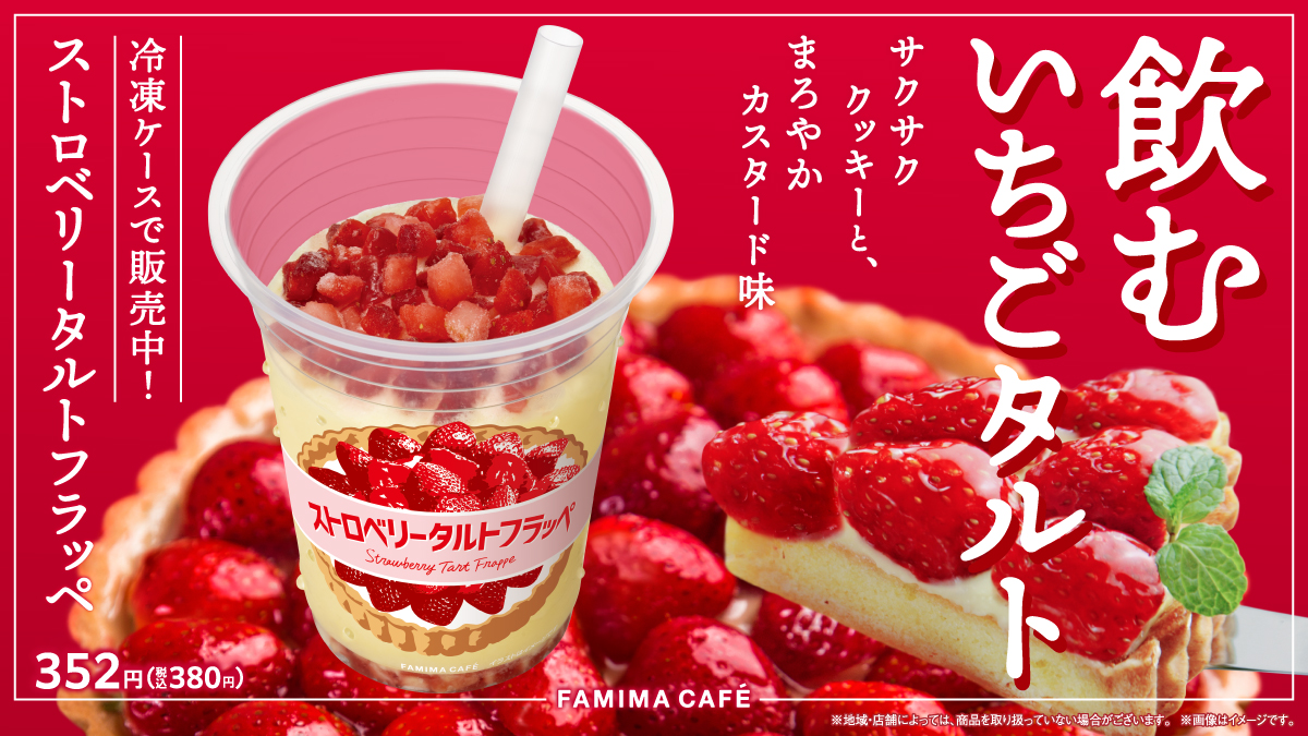 沖縄地域を除く全国のファミマで「ストロベリータルトフラッペ」が2025年11月18日(火)から販売が開始されています。価格は380円(税込)。
