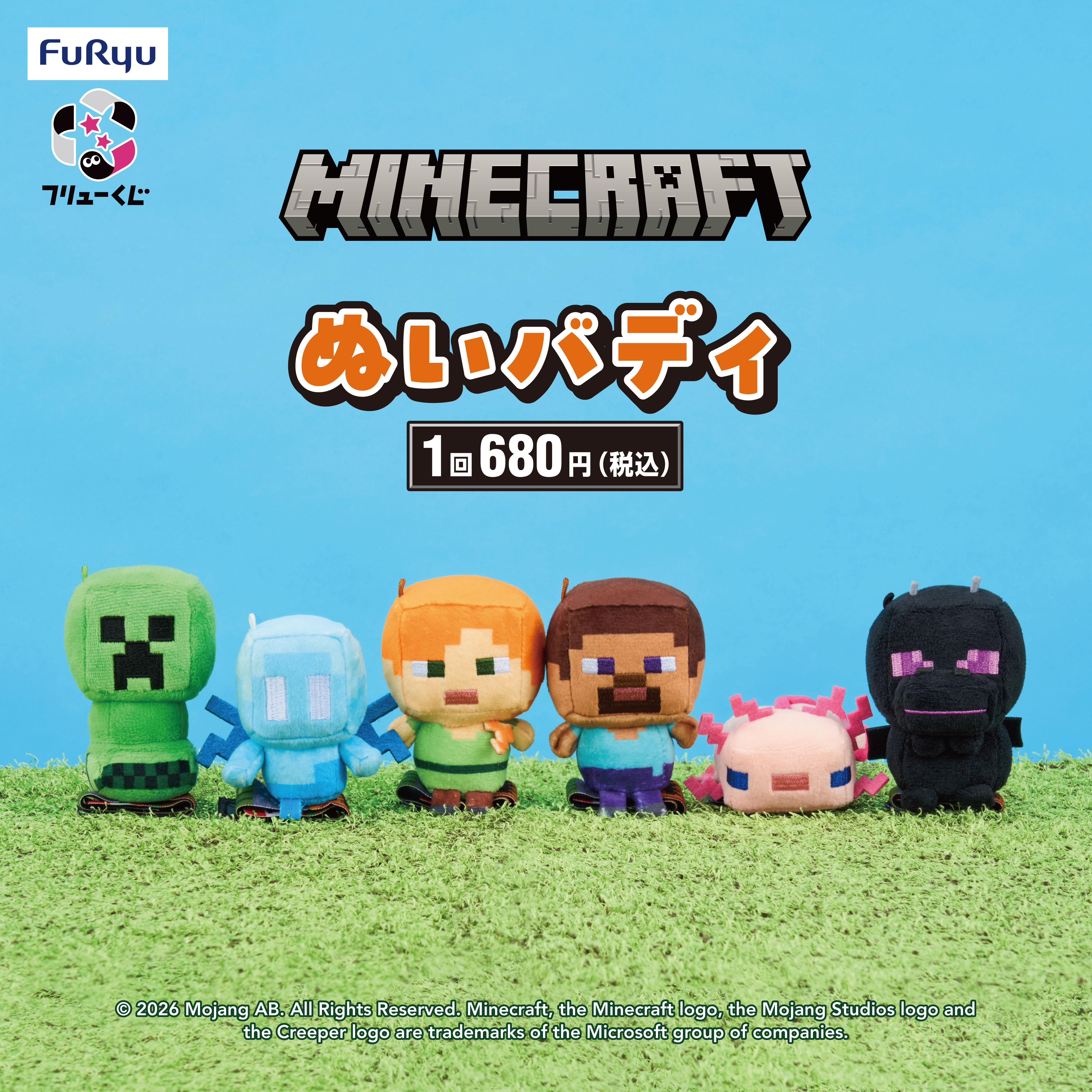 「フリューくじ マインクラフト ぬいバディ」が2026年1月17日(土)から順次販売が開始されます。価格は1回680円(税込)、取り扱い店舗はファミリーマート。