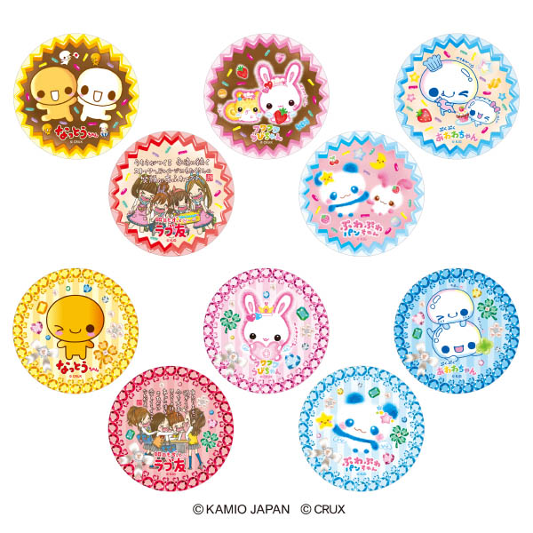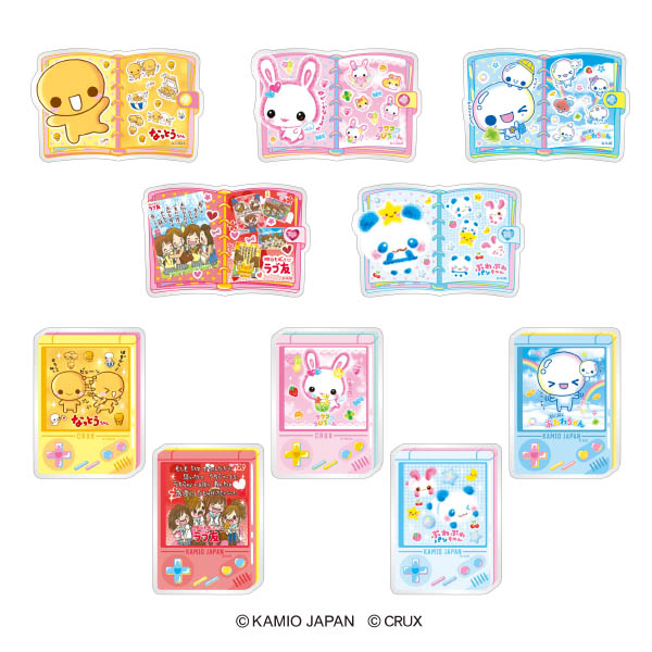 それぞれのグッズで各キャラクターが2デザインずつ、各10種ずつがラインアップされ、いずれか1種がランダムで封入されるブラインドパッケージで提供されます(購入前にキャラクターやデザインを選ぶことは不可)。