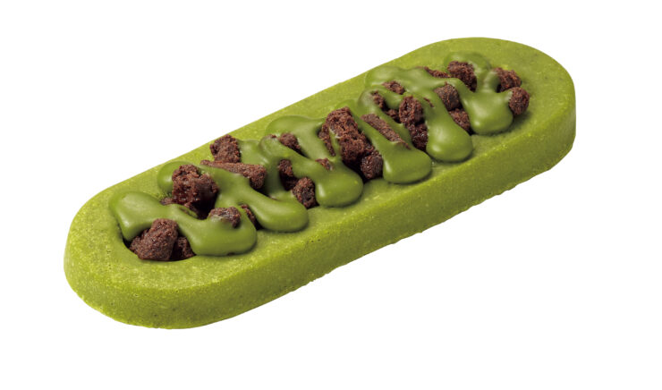 ガトーショコラ生地にココアクランブルをトッピングし、抹茶チョコソースをかけたとのこと。ブラックサンダーならではのザクザク食感と、抹茶の味わいが特長とされています。