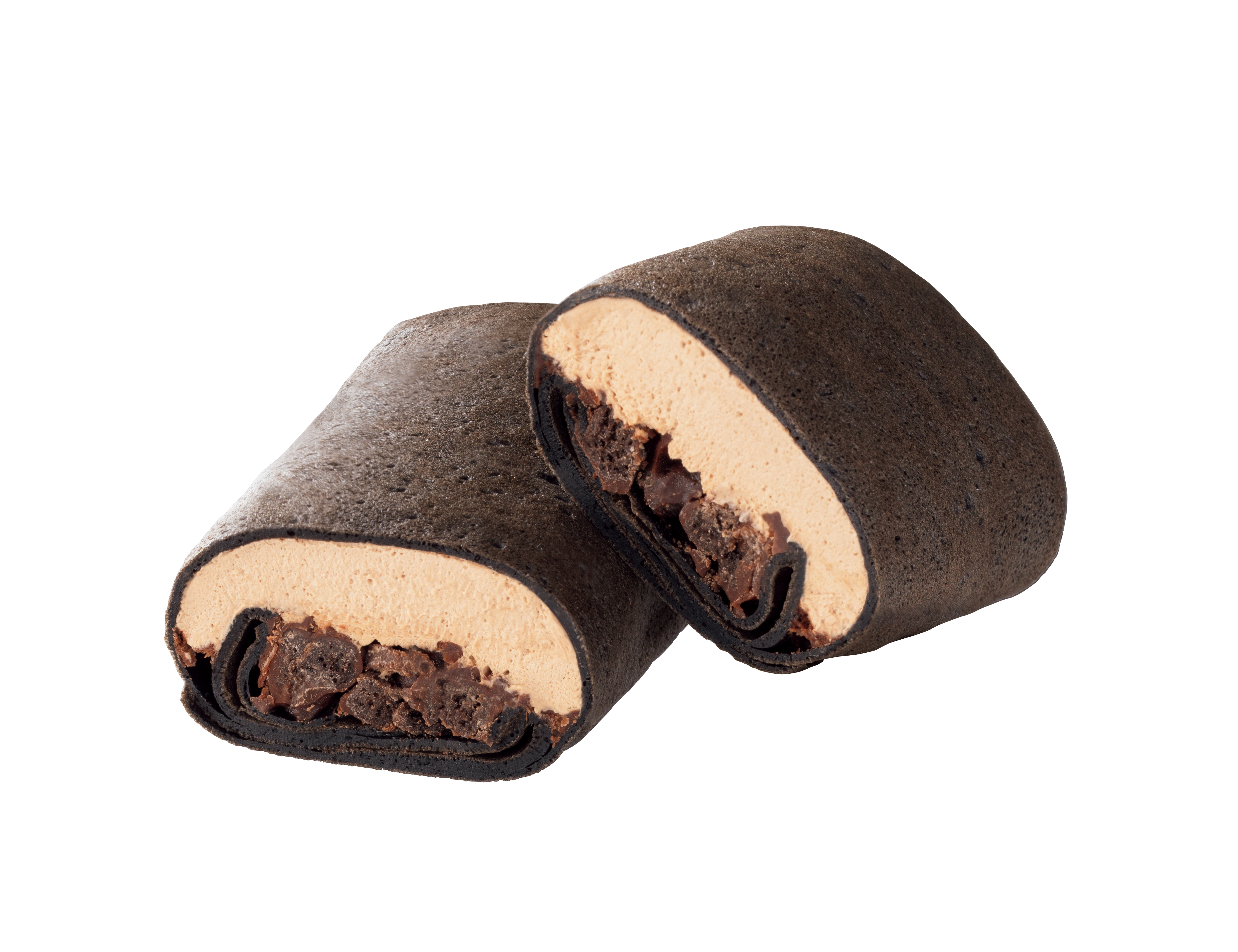もちもち食感のクレープ生地で、チョコホイップとザクザク食感のココアクランブルを包んだそうです。