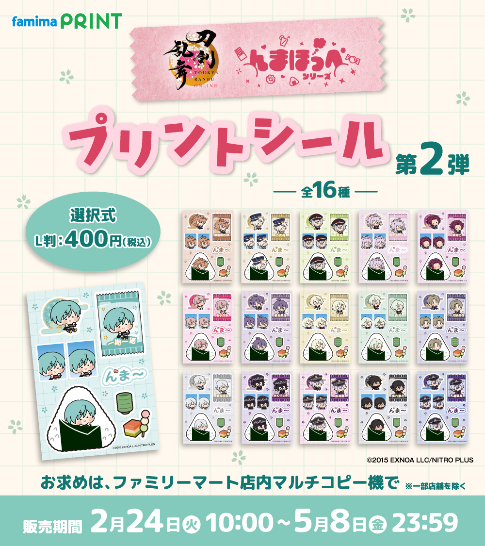 なお、ファミリーマートでは「刀剣乱舞 んまほっぺ プリントシール 第1弾/第2弾」も販売されています。