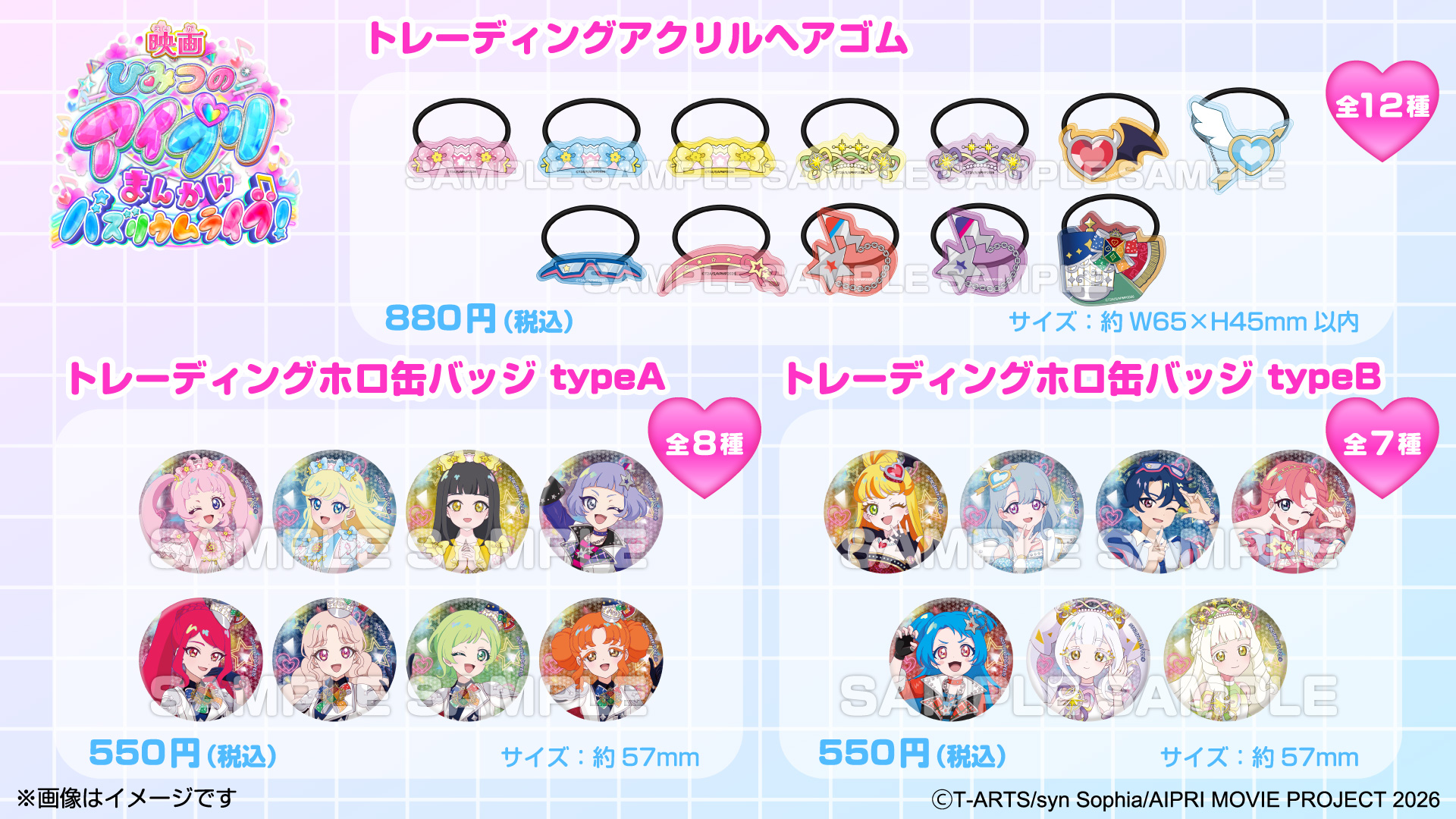 ファミマ限定『映画ひみつのアイプリ まんかいバズリウムライブ!』コラボグッズが2026年3月12日発売、トレーディング「ホロ缶バッジ」「アクリルヘアゴム」が登場