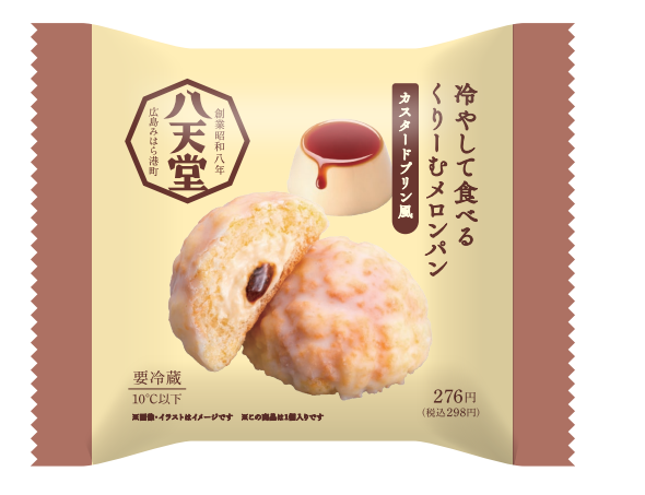 八天堂の「冷やして食べるくりーむメロンパン」シリーズに新商品が登場、コンビニのファミリーマートで「冷やして食べるくりーむメロンパン カスタードプリン風」が2026年3月17日(火)から販売が開始されています。販売価格は298円(税込)。