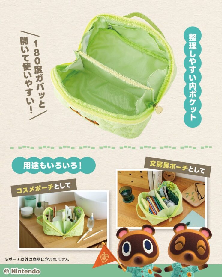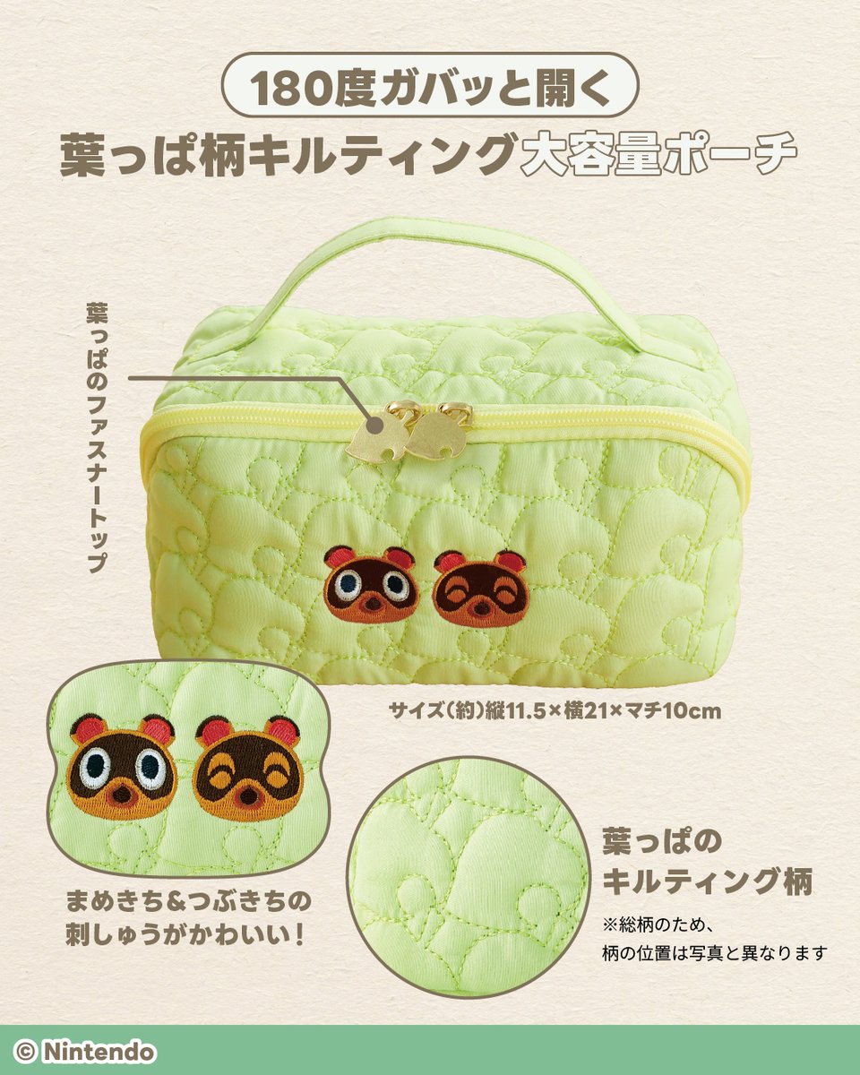 あつまれ どうぶつの森 180度ガバッと開く葉っぱ柄キルティング大容量ポーチBOOK