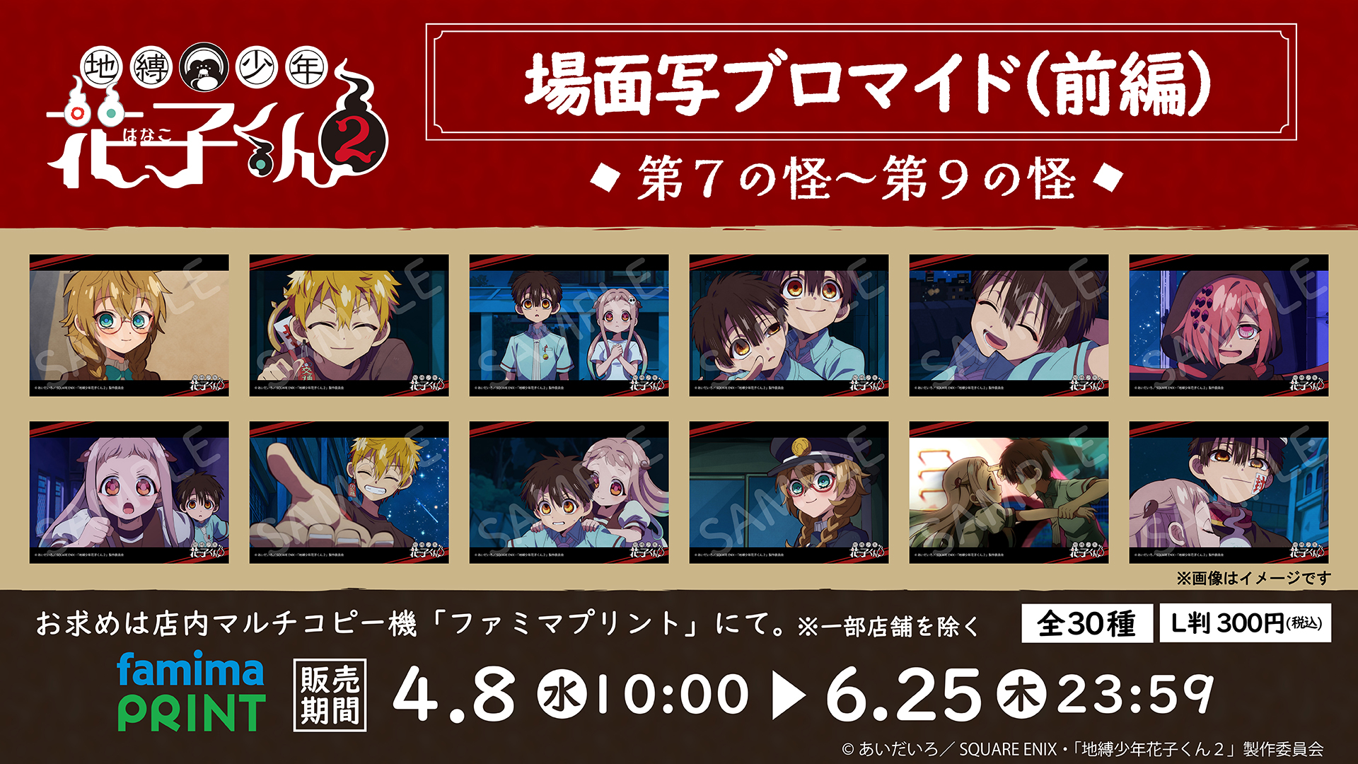 ファミマで『地縛少年花子くん2 前編』場面写ブロマイド第3弾が2026年4月8日発売、第7の怪「ヨマイゴト」~第9の怪「カクシゴト」までの全30種が登場。好きなシーンを選んで購入可