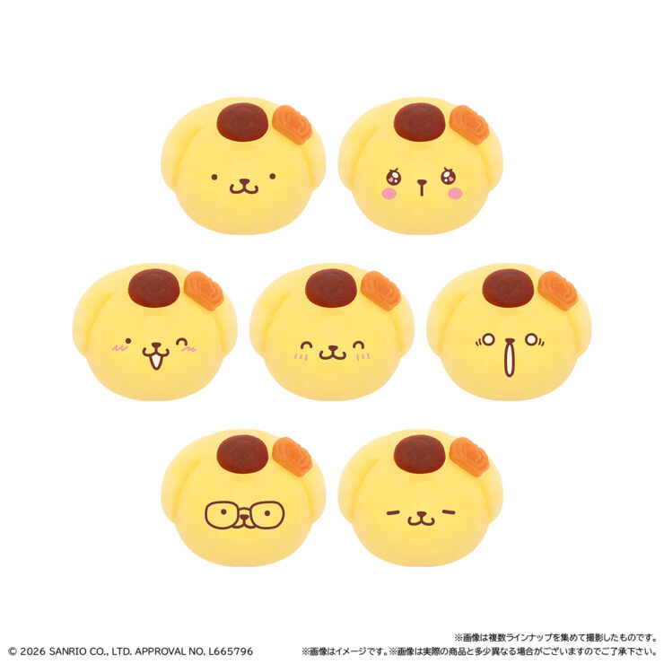 キャラと味の組み合わせで2種類がラインアップされ、「ポムポムプリン(カスタード味餡) & ポチャッコ(ミルク味餡)」、「シナモロール(ミルクティー味餡) & クロミ(チョコレート味餡)」、の組み合わせとなっています。