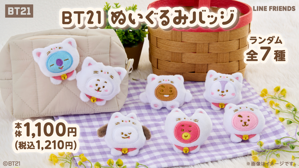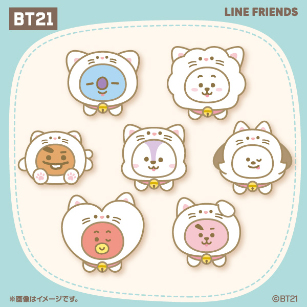 今回販売されるBT21のグッズは、BT21メンバーが可愛いふわふわで可愛い猫の姿で登場するぬいぐるみバッジ。