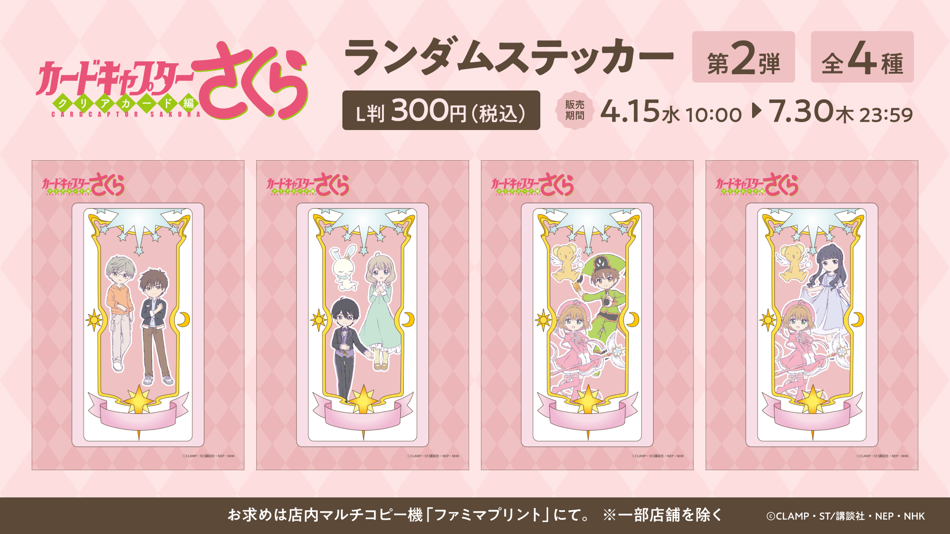 ファミマプリント「カードキャプターさくら ~クリアカード編~ ステッカー」の第2弾で、今弾では桜&知世 / 桃矢&雪兎などペアデザインのカード風ステッカーが登場。