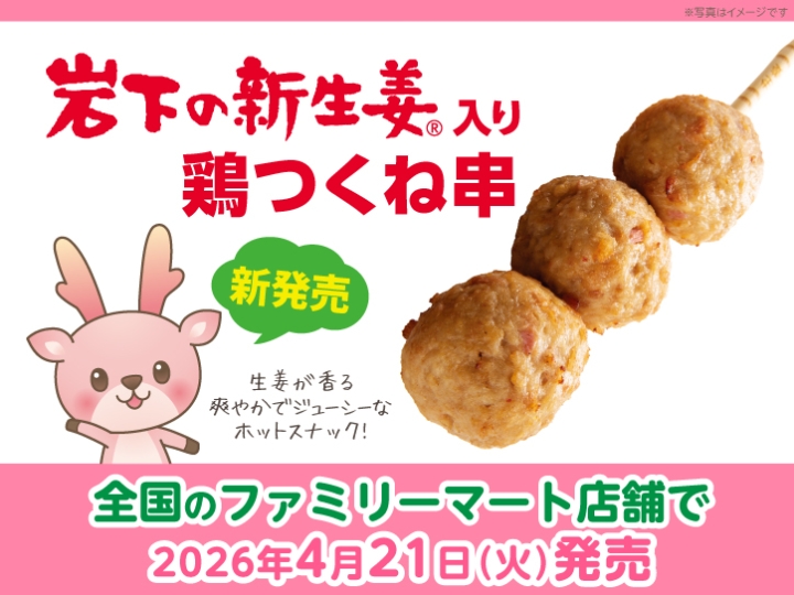 ★全国のファミリーマート店舗で「岩下の新生姜入り 鶏つくね串」を4月21日発売 ~生姜が香る爽やかでジューシーなホットスナック~|岩下食品 https://t.co/9EDV5IxG5b