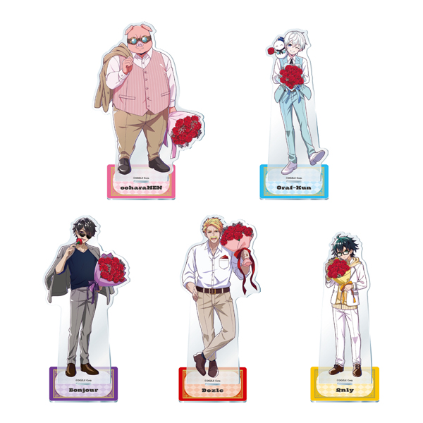 “フォーマルスタイル”なドズル社メンバーが「アクスタ」「缶バッジ」になって登場