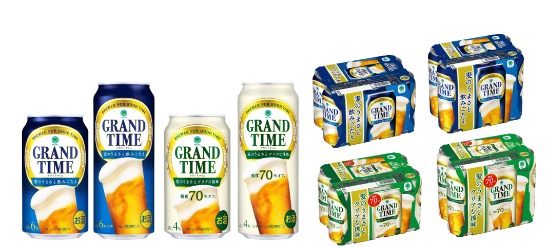 「グランドタイム」は、原材料に大麦とアロマホップを一部使用し、よりビールに近い味わいと後味のよさを実現したというもの。アルコール度数は6%で、飲みごたえも抜群とのこと。