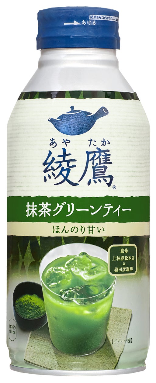 綾鷹 抹茶グリーンティーは、京都・宇治の老舗茶舗「上林春松本店」の協力のもと厳選した国産抹茶100%を使用し、コーヒー専門店「猿田彦珈琲」監修のもと、上品な抹茶の苦みとやわらかい甘さを楽しめるという抹茶ドリンク。