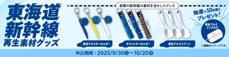 上記グッズを購入した人を対象に、東海道新幹線で活躍したN700系typeA「X2」編成の車体アルミを再生利用して製作された「再生アルミ ドッグタグ」が抽選で当たるキャンペーンが実施。