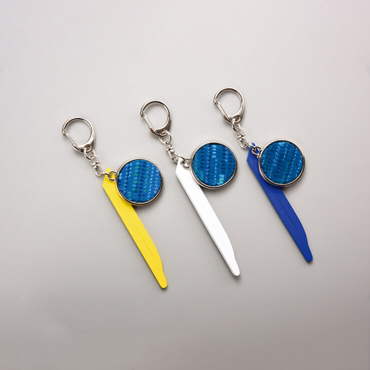 今回、ファミマオンラインで予約販売されている「東海道新幹線 再生素材グッズ」は、東海道新幹線の車両に使用されていた素材をアップサイクルした「再生アルミキーホルダー」「モケットキーホルダー」「再生アルミスプーン」の3商品。