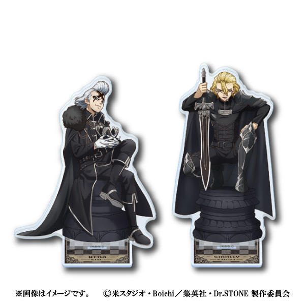 石神千空 / あさぎりゲン / Dr.ゼノ / スタンリー・スナイダーが「チェス」テーマの衣装で登場、アクスタ / 缶バッジ2個セットが店頭販売