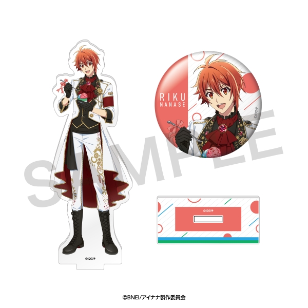 アイスを手にした七瀬陸、和泉一織、二階堂大和、和泉三月、六弥ナギ、四葉環、逢坂壮五の7名が登場し、好きなキャラクターのアクスタ&缶バッジセットを購入できます。価格は各2,200円(税込)。