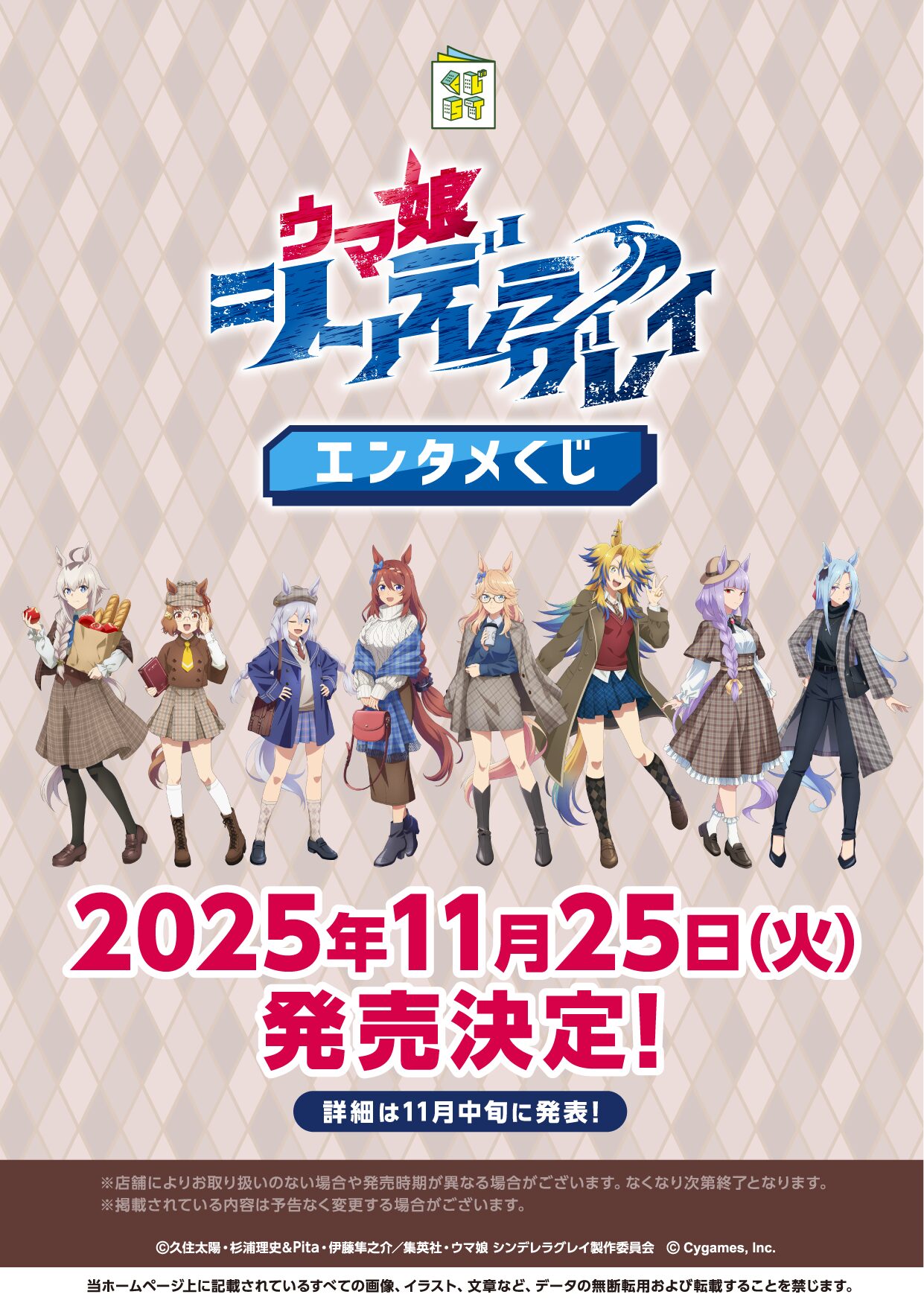 「アニメ『ウマ娘 シンデレラグレイ』エンタメくじ 第2弾」が2025年11月25日(火)に発売が予定されています。取り扱い店舗はローソングループ。