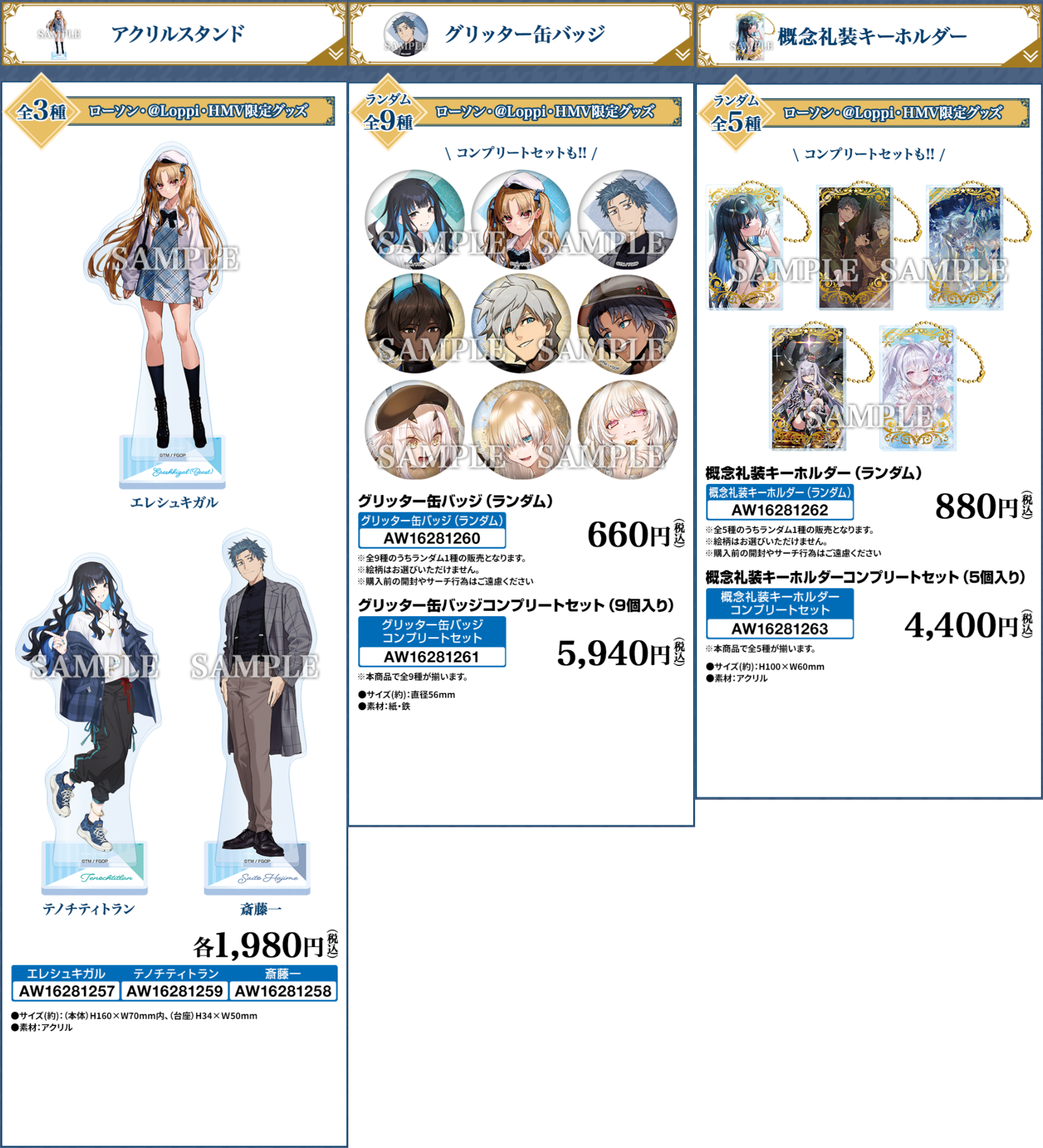 - FGO×ローソン「アクリルスタンド」(全3種):各1,980円(税込)