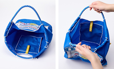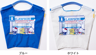 トートバッグにはハローキティ、ポムポムプリン、クロミ、ポチャッコ、シナモロールが登場し、カラーは「ブルー」と「ホワイト」の2種類が展開。本体サイズは幅30~43×高さ46×マチ9cm。