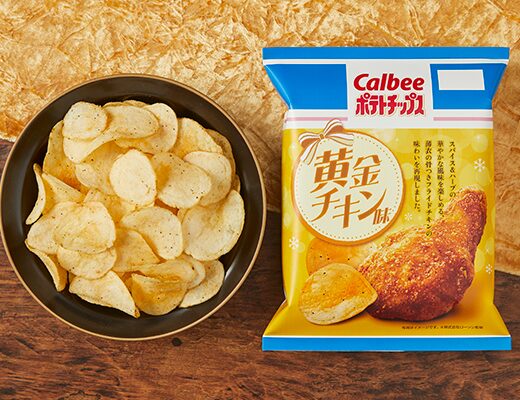 ローソンのクリスマスチキン「黄金チキン」の味わいを再現したというポテチがカルビーから登場。