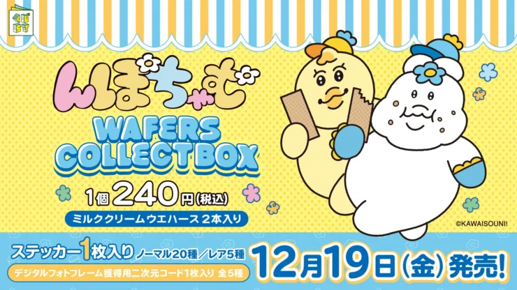 「んぽちゃむウエハースコレクトボックス 第2弾」(んぽちゃむウエハース第2弾)が2025年12月19日(金)から順次販売が開始されます。価格は240円(税込)、取り扱い店舗はローソン、HMV。