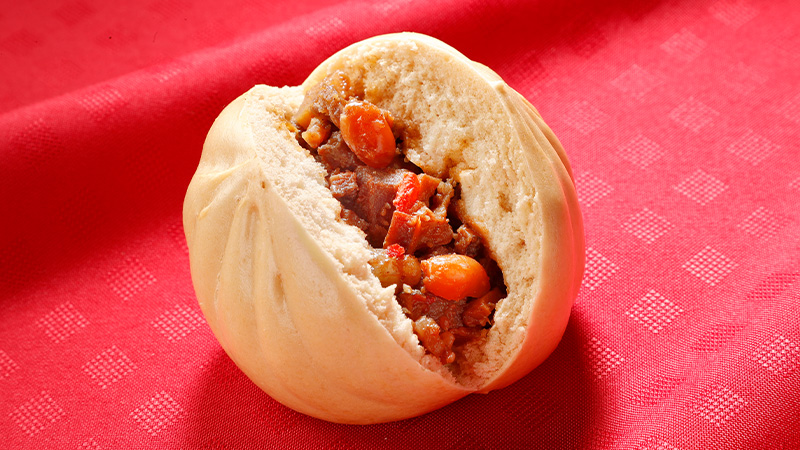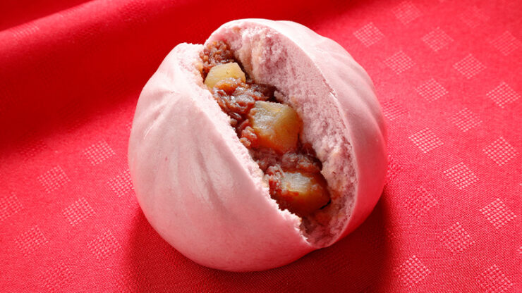 りんごといちごの甘酸っぱい風味と食感を楽しめる中華まんとされています。