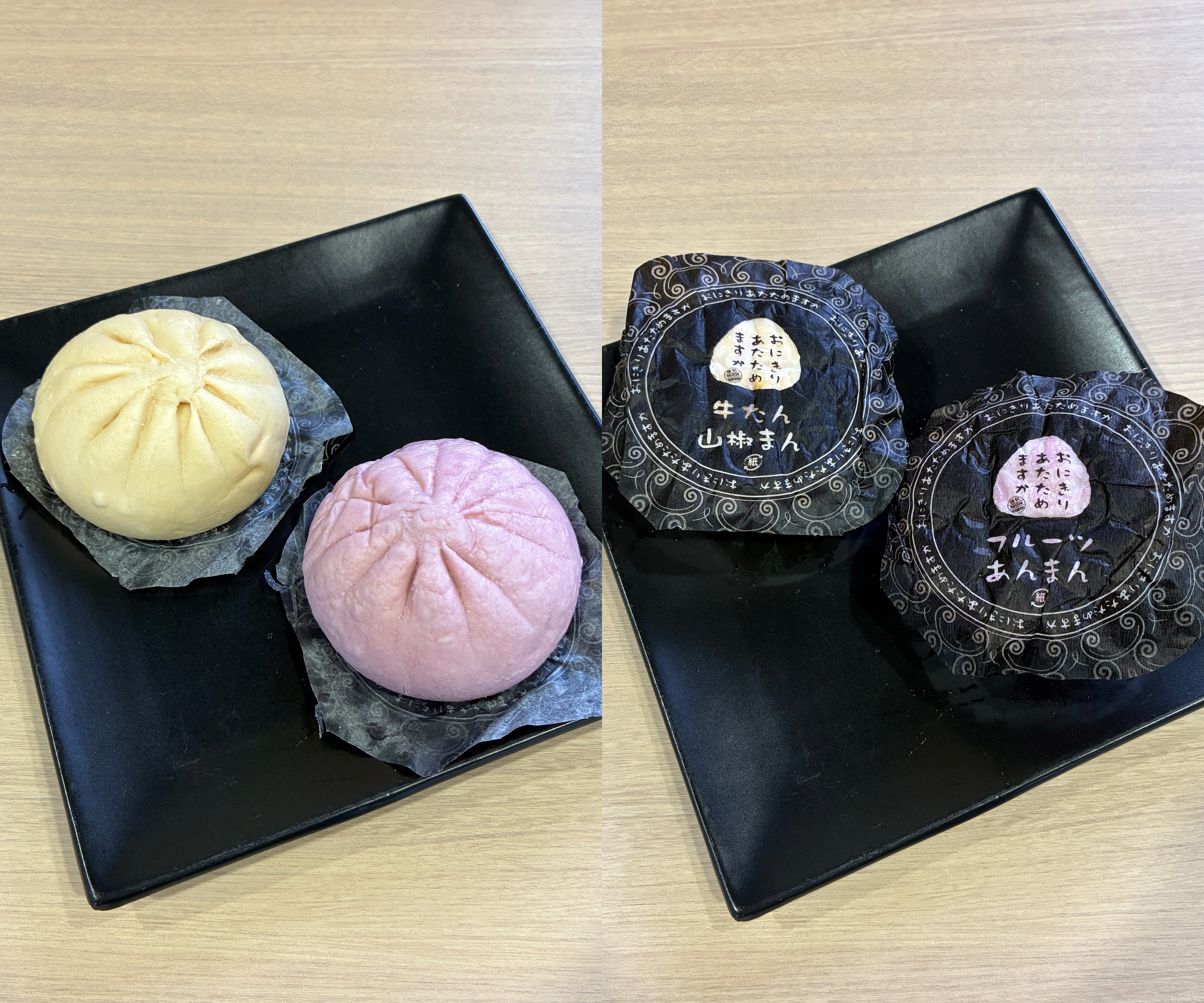 今回は「フルーツあんまん(りんご&いちご)」と「牛たん山椒まん(ピーナッツ入り)」の2種類の中華まんです(^^)