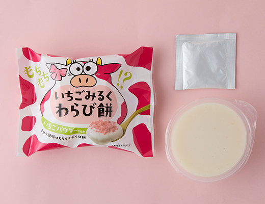 いちごとミルクの味わいをもちもち食感とともに楽しめる「いちごみるくわらび餅」