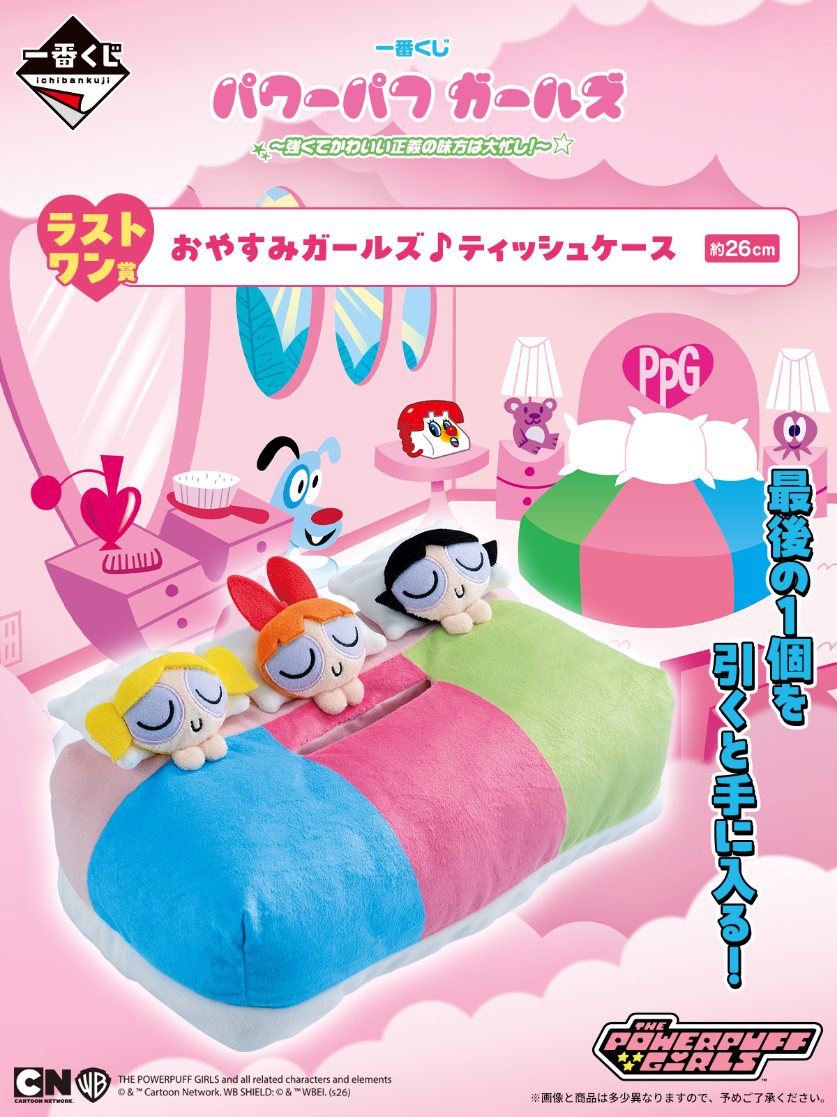 『パワーパフガールズ』の新作グッズが当たる一番くじ、ラストワン賞は「おやすみガールズ♪ティッシュケース」