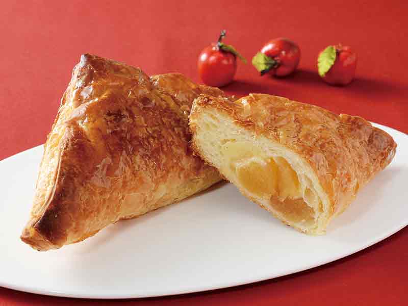 バター感のあるパイにゴロっとしたりんごの果肉を包み、くちどけのよいカスタードを注入したという三角型のアップルパイ。